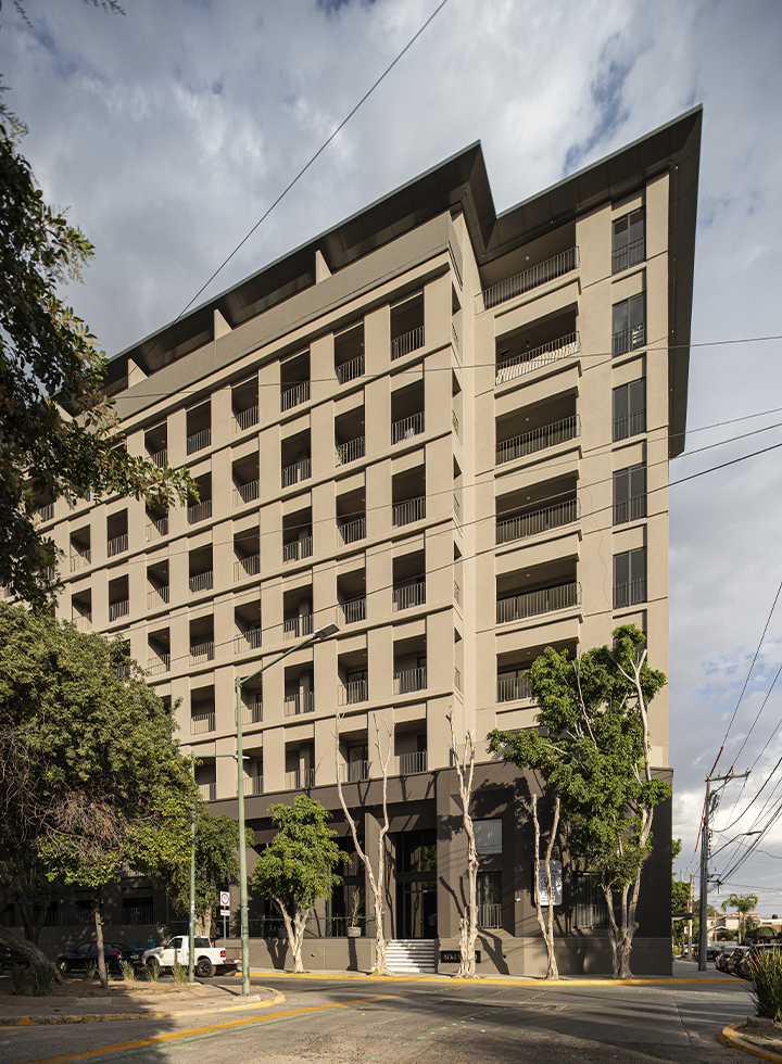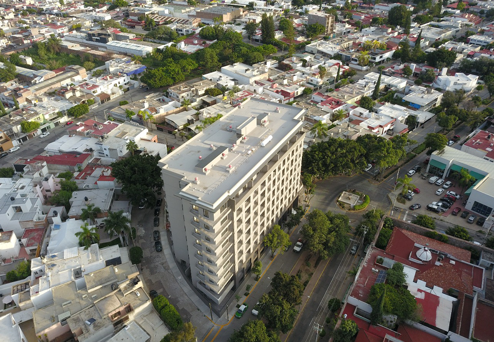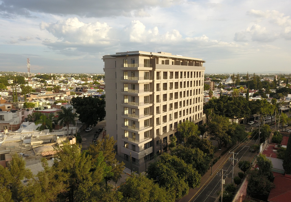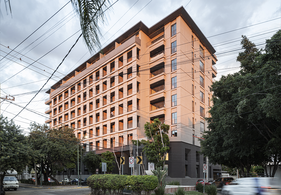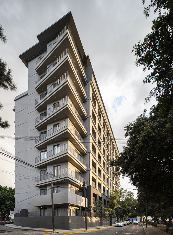Es una obra vertical de 9 niveles y 3 sótanos, consta de 131 departamento y área de amenidades.