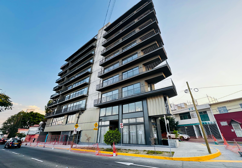 Es una obra vertical de 9 niveles y 1 sótano, consta de 23 despartamentes y area de amenidades.